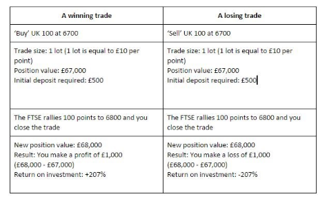 Usted entra en largo en el UK 100 en 6700, que presenta un margen de 0.5% (200:1).