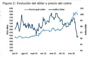 En paralelo, se observó una intensificación de la actividad especulativa, particularmente en los mercados asiáticos. Los volúmenes transados en la Bolsa de Futuros de Shanghái (SHFE) alcanzaron niveles históricamente elevados para un mes de enero, lo que contribuyó a amplificar los movimientos de precios. Sin embargo, distintos indicadores sugieren que este repunte no estuvo acompañado por una recuperación equivalente de la demanda física. En China, principal consumidor mundial, la prima del cobre importado descendió hacia niveles cercanos a US$ 20–25 por tonelada, reflejando un menor apetito por compras al contado, pese a los altos precios.